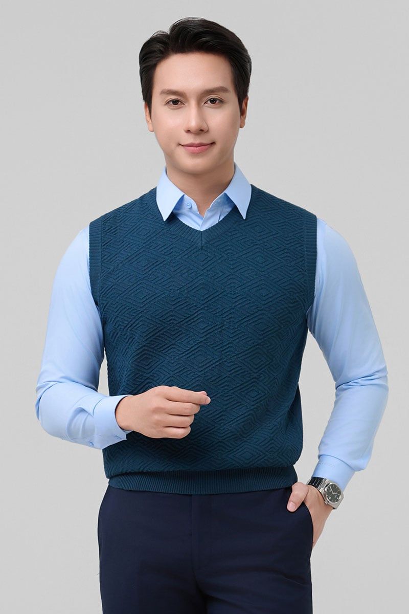 Áo len ghi lê nam cổ tim Merriman mã THMAL033 màu D.TEAL