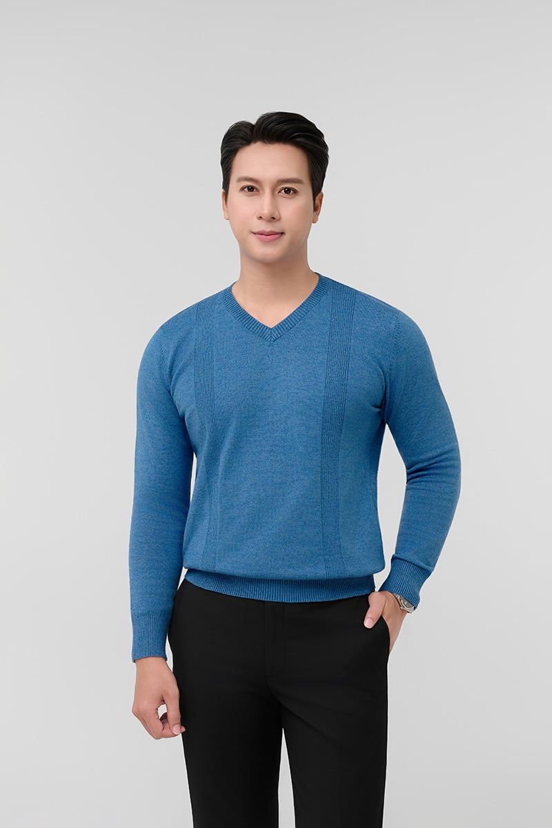 Áo len nam cổ tim Merriman mã THMAL031 màu BLUE