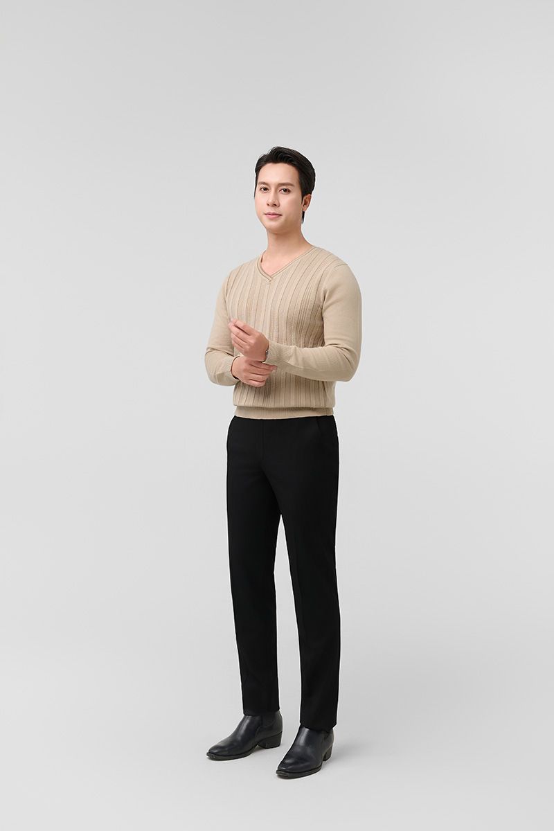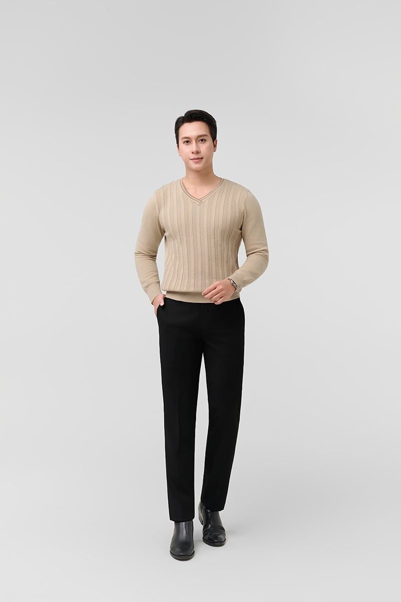 Áo len nam cổ tim Merriman mã THMAL032 màu CREAM