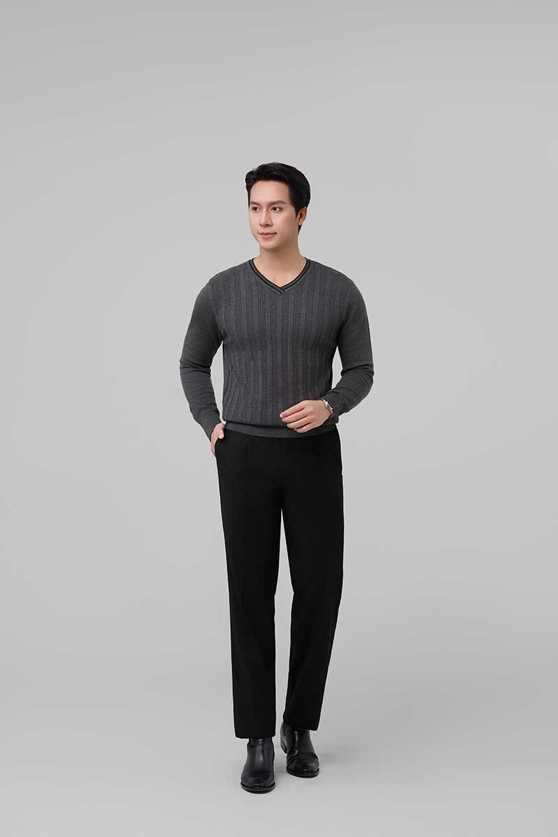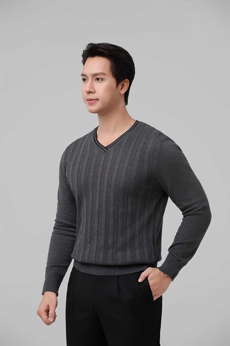 Áo len nam cổ tim Merriman mã THMAL032 màu GREY
