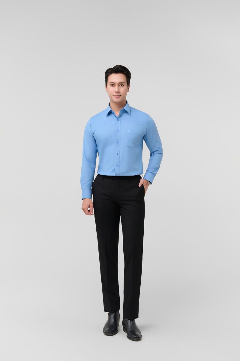 Áo sơ mi nam công sở màu xanh Merriman mã THFMOL538 chất liệu ngải cứu