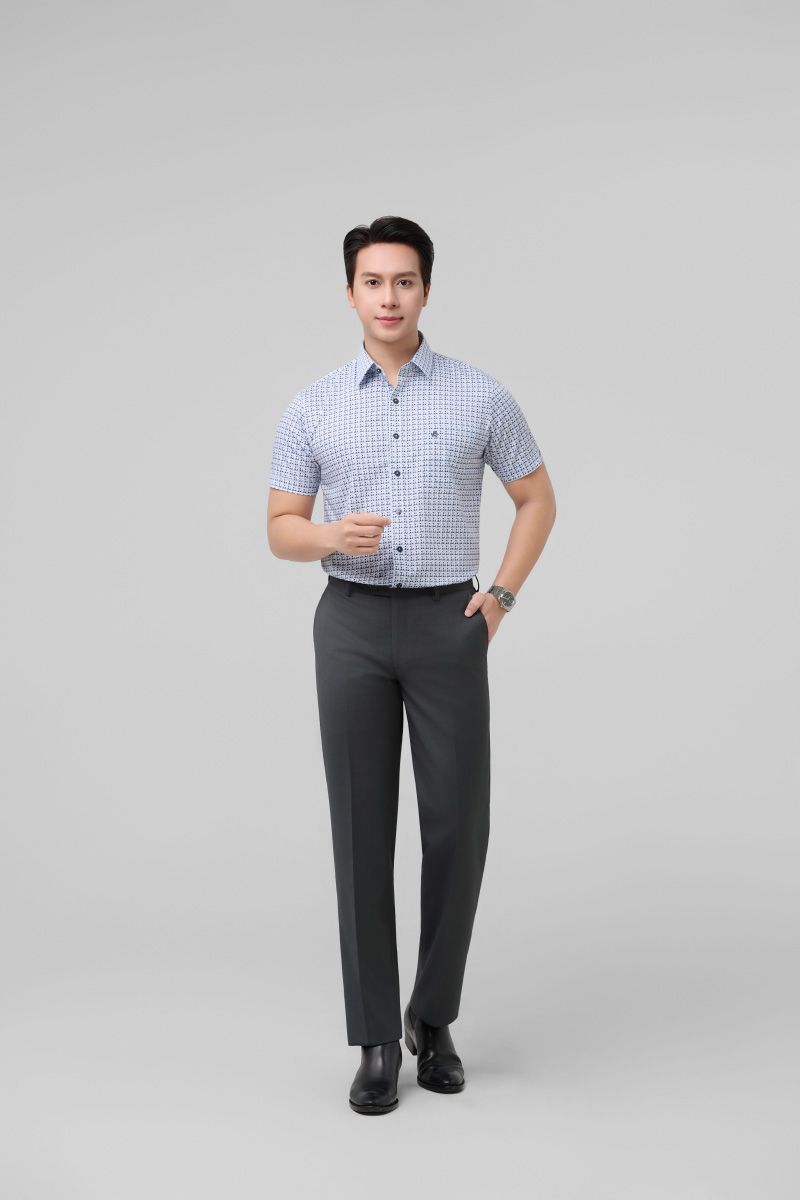 Áo sơ mi nam hoạ tiết Merriman mã THMCS264 tay ngắn