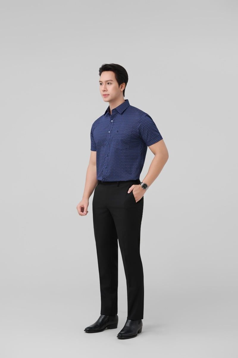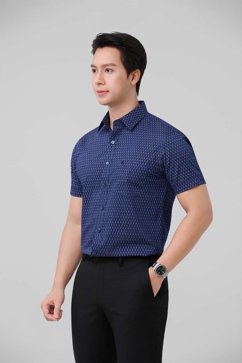 Áo sơ mi nam hoạ tiết Merriman mã THMCS265 ngắn tay màu Navy