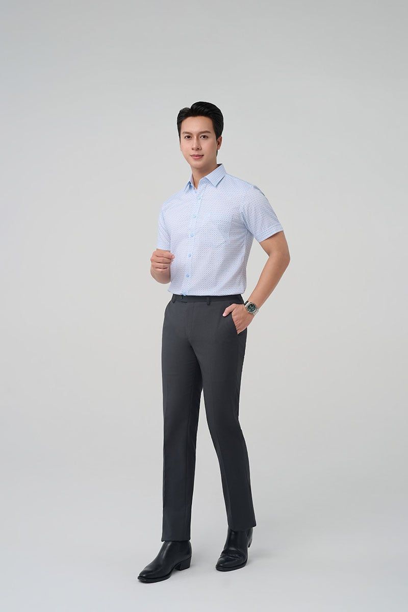 Áo sơ mi nam hoạ tiết ngắn tay Merriman mã THMCS260