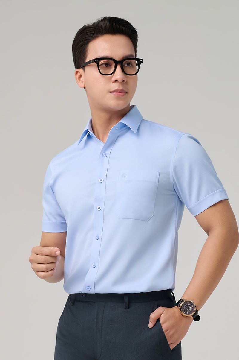 Áo sơ mi nam tay ngắn Merriman mã THMOS476 màu xanh