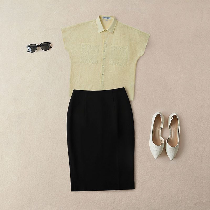 Áo sơ mi nữ dáng suông Merriman mã THWSS027 màu YELLOW