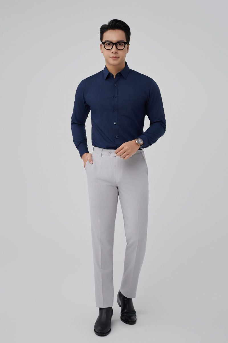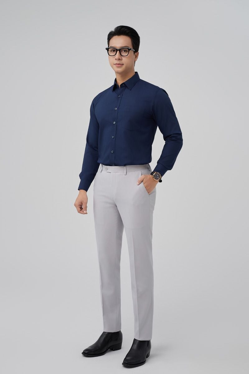 Sơ mi nam công sở dài tay Merriman mã THMOL505 màu xanh Navy